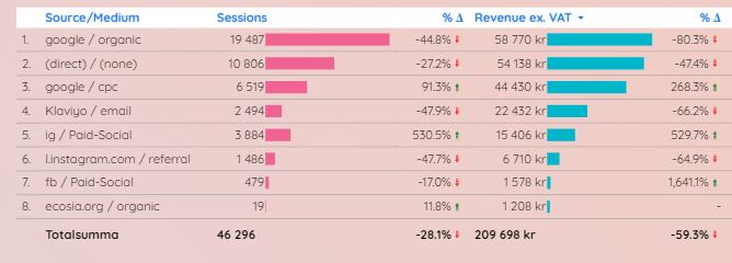 Därför har vi tagit fram E-commerce analysis tool. Ett verktyg som automatiskt hämtar, organiserar och omvandlar data från alla dina plattformar till jämförbar information på ett och samma ställe. Vanligtvis är detta en process som tar upp väldigt mycket tid. E-commerce analysis tool tillåter istället anställda att agera på informationen istället för att sammanställa den!