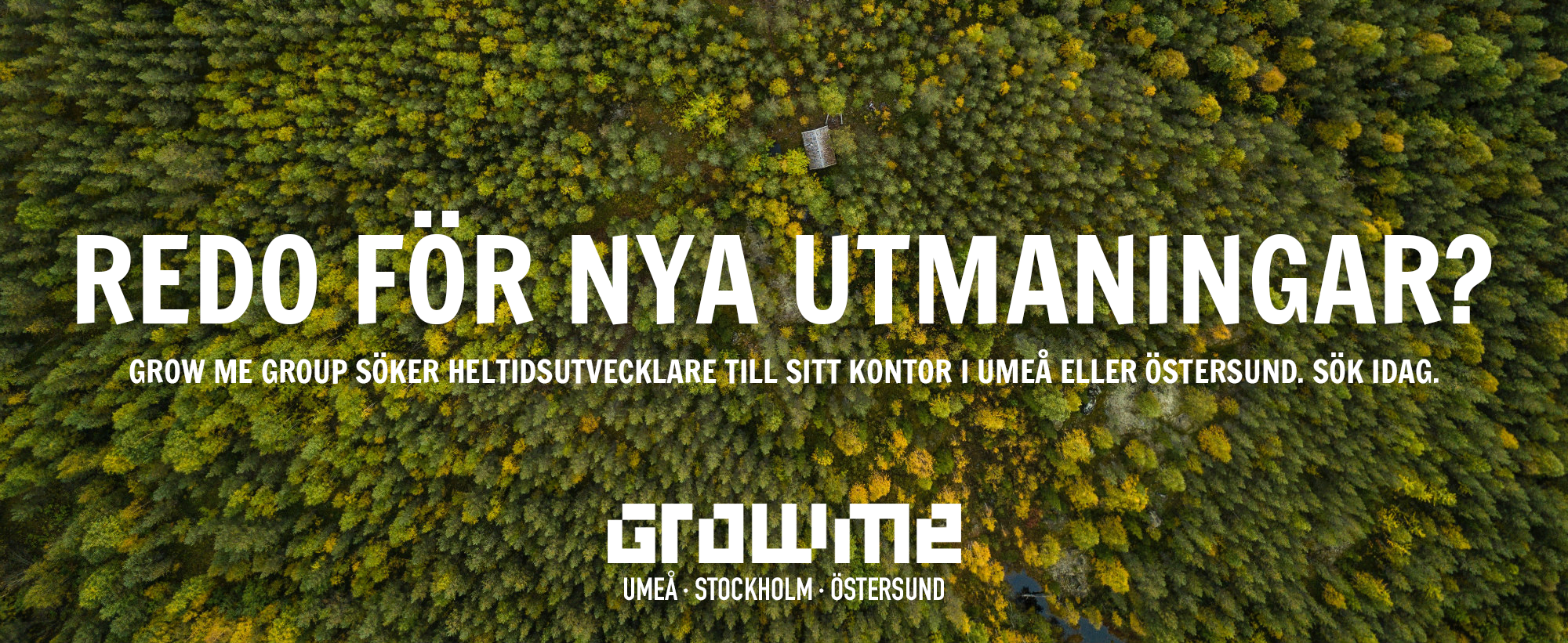 Är du redo för nya utmaningar i ditt arbetsliv som utvecklare och vill komma till ett innovativt företag med stora framtidsutsikter? GROW ME befinner sig just nu i en expansiv fas och söker därför en fullstack-utvecklare på heltid med placering i Umeå alternativt Östersund.