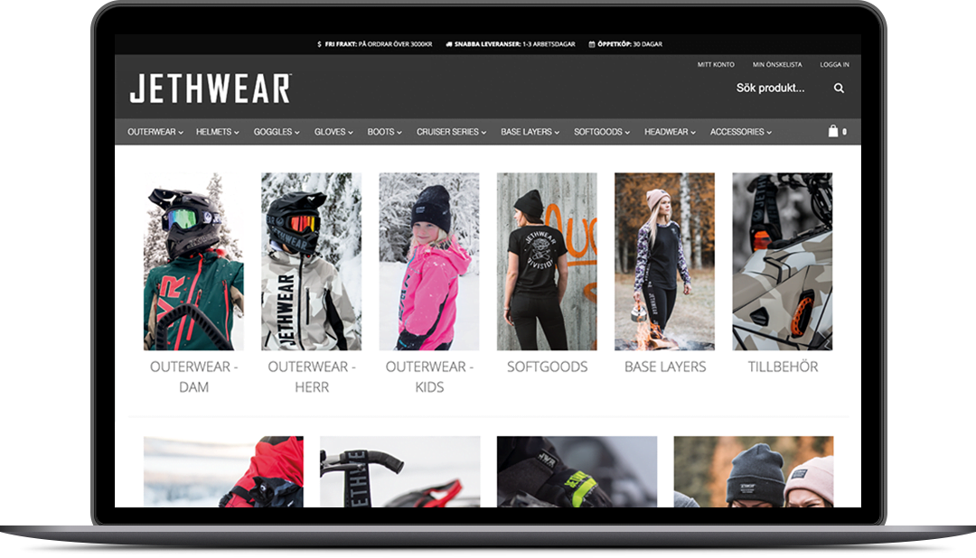 När Jethwear kom till oss och ville bygga en e-handel för sina fantastiska produkter visste vi exakt vilken plattform de skulle ha. Magento är den ulitmata plattformen för större e-handlare.